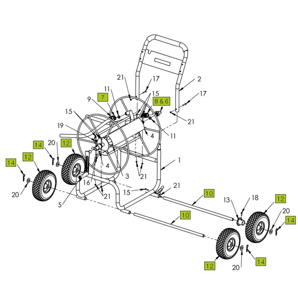 Dévidoir métallique sur 4 roues increvables – Edia – Pour tuyau d’arrosage de 110 mètres – Diamètre 19 mm – Noir et vert