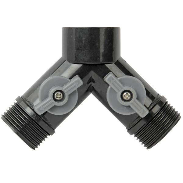 Raccord automatique sélecteur 2 directions fileté F20x27 et double sortie M20x27 – Plastique Noir