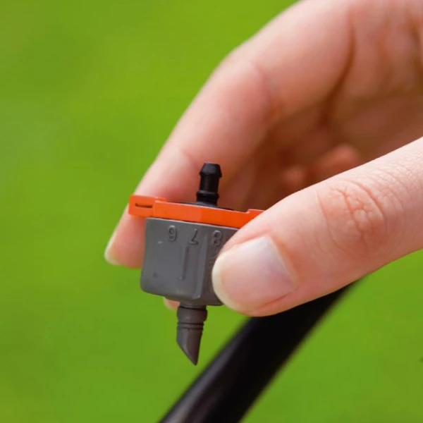 Ce goutteur régulateur de pression est un élément du système d’arrosage goutte à goutte « Micro-Drip » Gardena.