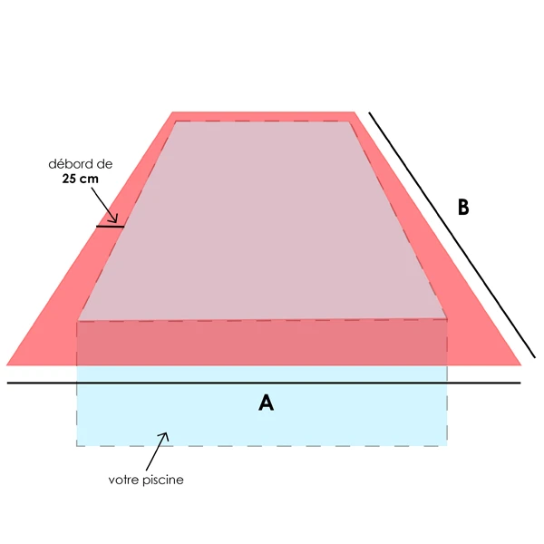 - Piscine de 8 x 3,5 mètres : débord de 25 cm nécessaire sur le pourtour du bassin