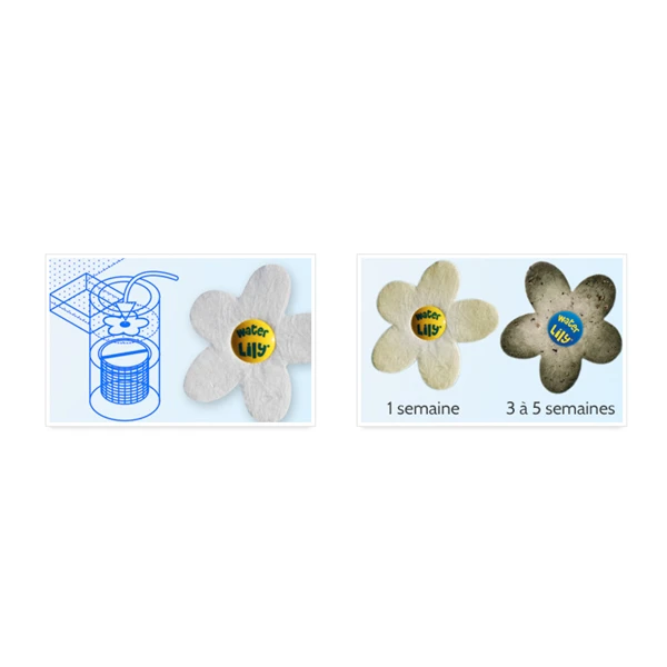 - Water Lily est un produit jetable qui doit être changé toutes les 3 à 5 semaines en fonction de la fréquentation et de l’environnement du bassin